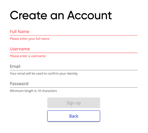- アカウント情報(Full Name/Username/Email/Password)を入力して、[Sign up]ボタンをクリックします。