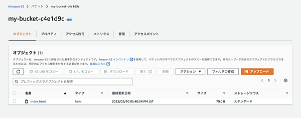 無事にS3 Bucketが作成されたので、次はBucketのObjectとしてHTMLファイルを作成します。