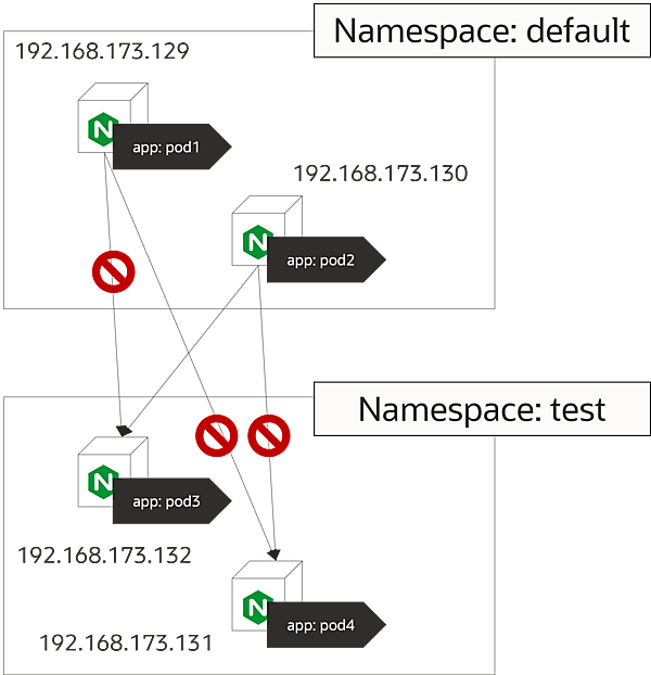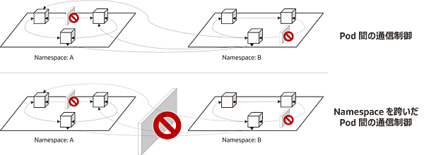 | namespaceSelector | 特定のNamespace上のPodからの通信を許可 | 特定のNamespace上のPodへの通信を許可 |