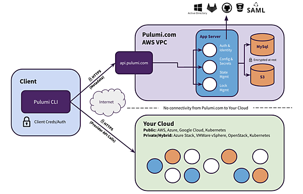 - Pulumi Serviceと管理対象のクラウドインフラとで直接通信は発生しない