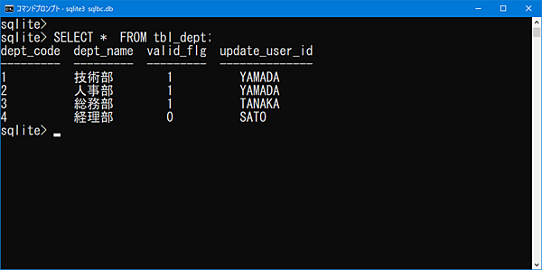 次に、部署テーブルの内容を確認してみましょう。