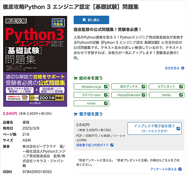 寺田:基礎試験は一番ベーシックなPythonの文法を理解できているかをチェックするレベルなので、この資格を取ったからと言って、Pythonエンジニアとして即戦力になるとは思っていません。しかしながら、Pythonが良く普及しているAIやデータ分析、自動化、Web等の分野の技術者を目指す方は、Pythonの基礎を理解しておいた方が良いと思うので、まずはこの書籍を活用いただき、Pythonの基礎文法を学習されることをお勧めします。