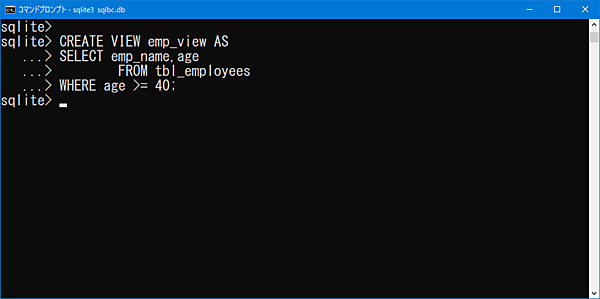 ビューもテーブルと同様にコマンドで作成できます。