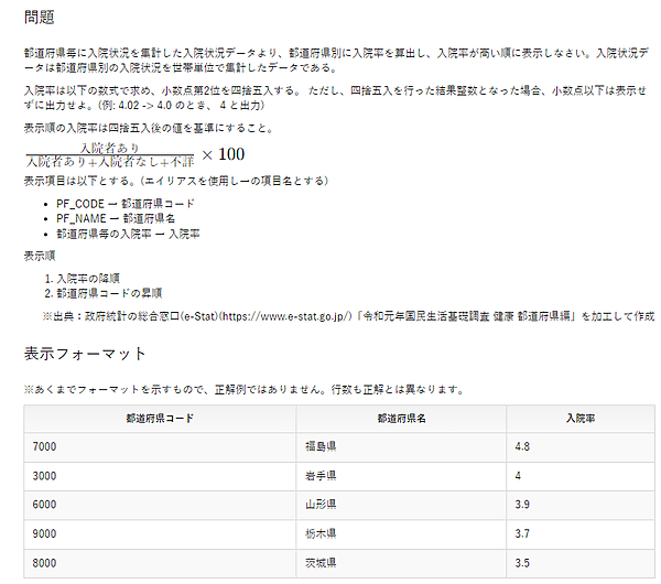 難易度2ということで、テーブル結合を利用して2つのテーブルを結合し、小数点の計算を行う問題となっています。