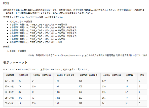 それでは最後の問題、難易度4にチャレンジしてみましょう。問題に登場してくる睡眠時間詳細データのように、縦持ちのデータを表形式にする場合によく利用される方法なので、ぜひ覚えてください。