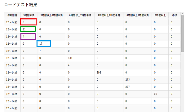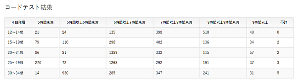 睡眠時間詳細データの1レコード毎の対象人数が、年齢階層と睡眠時間に振り分けられていることが確認できます。この結果を年齢階層で集計することにより、最終的に表示フォーマット例のように表形式で表示できます。それほど難しい関数等を使用していないので、実装方法さえ覚えてしまえば色々と活用できると思います。