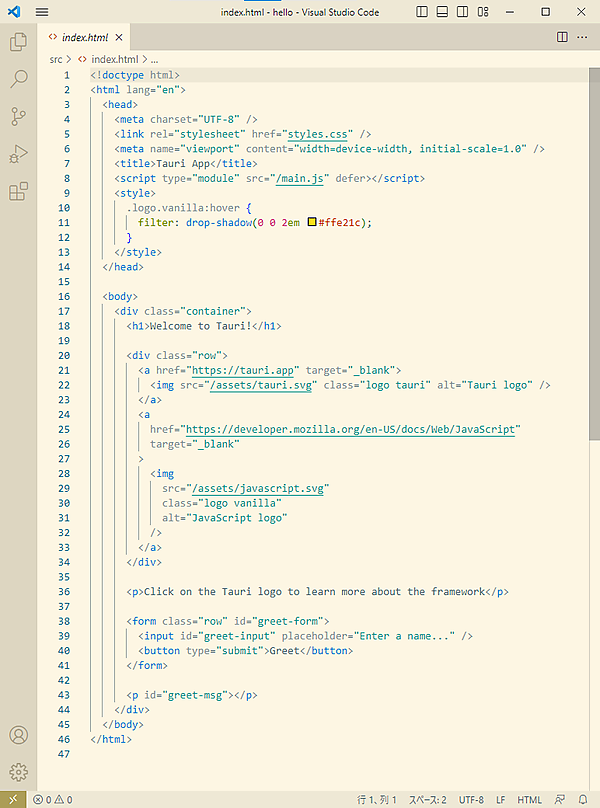 「JavaScriptでフロントエンドのWebページを全てコントロールする」と言っても過言ではありません。バックエンドのRustとやり取りするのもJavaScriptの仕事で、JavaScriptのコードを書かずしてバックエンドのRustとメッセージでデータを送受信することはできません。