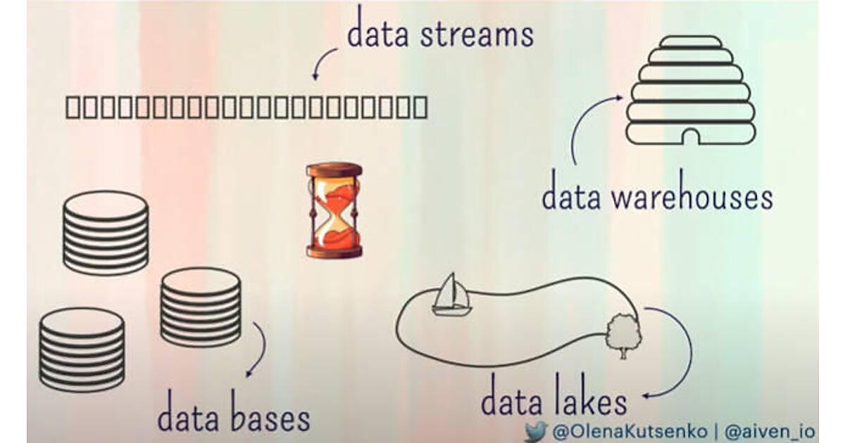 Kutsenko氏はデータベース、データ処理といってもさまざまな種類があること、特にトランザクション処理、ストリーミング処理、データウェアハウス、データレイクなどを例に挙げて解説。