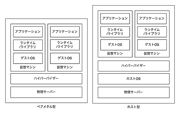 仮想マシンを作成および実行するには「ハイパーバイザー」と呼ばれるソフトウェアが必要です。ハイパーバイザーは「ベアメタル」型と「ホスト」型の2種類に分類できます。ベアメタル型はハードウェア上で直接ハイパーバイザーを実行でき、OSによる制限を受けないためホスト型よりも高速に動作します。VMware ESXiやHyper-Vなどがベアメタル型です。