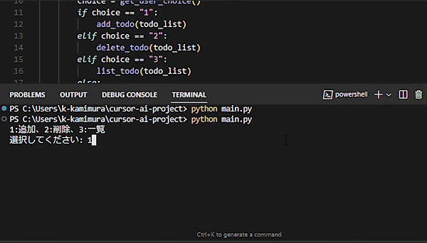 荒井氏は、コンソールで動くTODOアプリのPythonコードをAIで生成するデモを行った。ユーザーがプロンプトに仕様を入力すると、実際に実行可能なアプリケーションコードが自動生成され、問題なく動作した様子が紹介された。このような小規模なアプリケーションであれば、大抵はコード修正なしで動作する。また、エラーが発生した場合は、自然言語で修正指示をAIに与えれば、AIが適切にコードを修正してくれる。