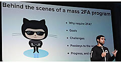 パスキーの効果を知ってる参加者よりも、このカンファレンスに参加していない企業のエグゼクティブにぜひ知ってもらいたいと思える内容のキーノート前半部分となった。特に電話が今も多くのコミュニケーションの方法として使われているアメリカでは、実体験としてリアルな内容となっている。この偽装された電話番号とSMSによって信用させるという部分は日本でも応用可能であり、その部分を具体的に見せることで人的要因が今や多くの攻撃の焦点になっていることを強調しており、日本のIT部門においても充分に参考になる内容だったと思われる。