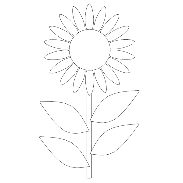 ところで、例えば図4のような塗り絵の輪郭線図があれば、誰でもそれなりの絵が描けるようになるでしょう。この画像を「名前を付けて保存」した後、今回のアプリで「開く」ボタンから読み込んで下書きにして、ヒマワリの丸アートを描いてみてください。
