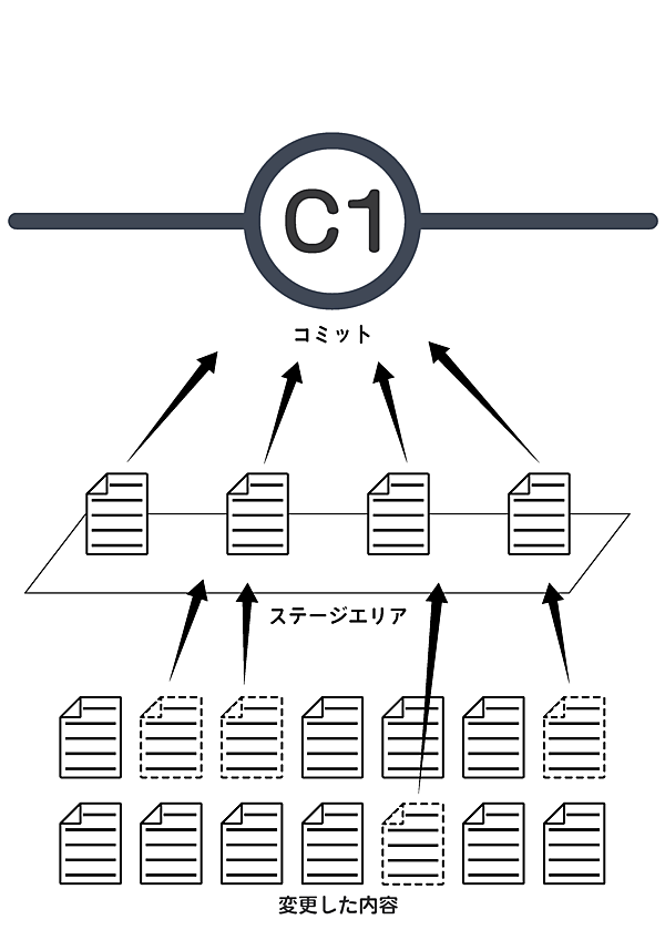 echo “console.log(`Hello, World!!`)“ > hello.txt変更した内容をコミットする必要はありますが、Gitの仕組みが理解できるまでは少し難しく感じます。Gitで変更内容をコミットするには、先にステージエリアへコミットしたいファイルを追加する必要があるため、次のコマンドを実行します。