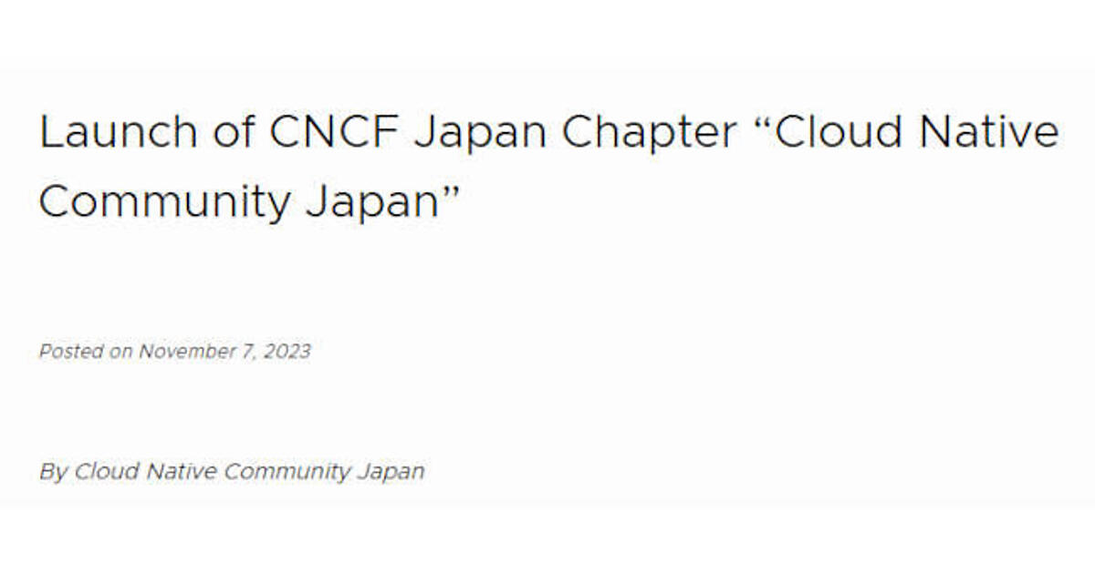 ●参考:CNCF Japan Chapter「Cloud Native Community Japan」の設立