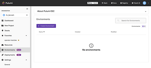 Pulumi ESCを利用するための一通りの設定が完了したので、動作確認をしてみます。