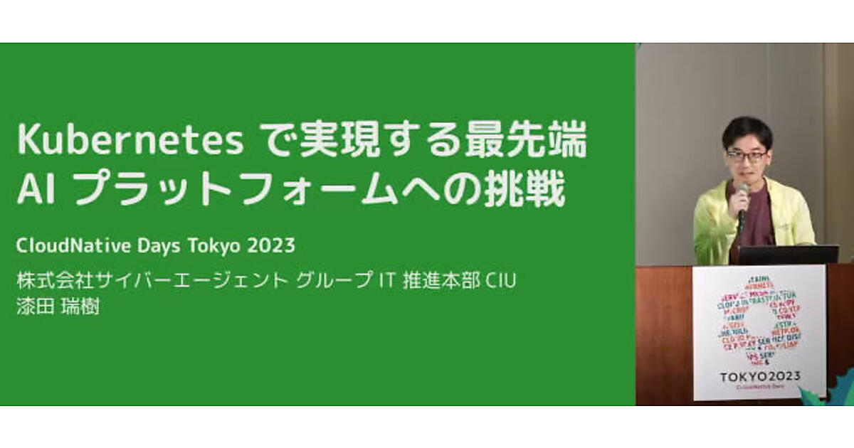 2023年12月11日、12日にオンラインとリアルの会場のハイブリッド形式で開催されたCloudNative Days Tokyo 2023のキーノートから、株式会社サイバーエージェントの漆田瑞樹氏によるAIプラットフォームに関するセッションを紹介する。