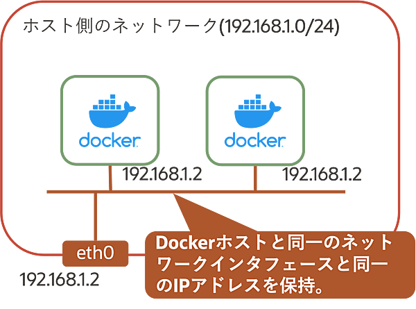 - Dockerのデフォルトのネットワークであり、最も利用される仕組み