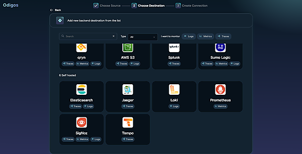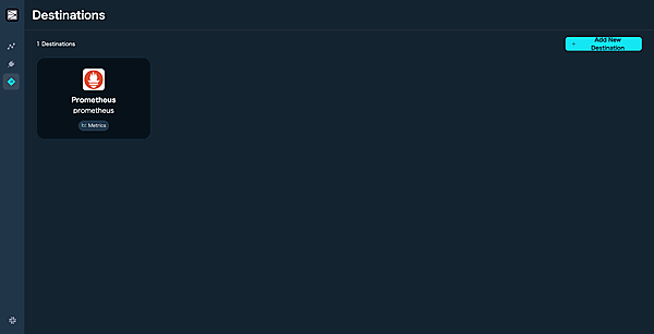 [Create Destination]をクリックすると送信先の作成が完了し、Overview画面に遷移します。左側にあるサイドバーの[Destinations]をクリックし、右上の [Add New Destination]をクリックして、残り2種類(Loki、Tempo)も作成します。