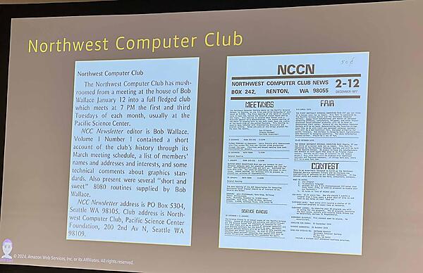 しかし最初のPCは組み立てキットであり、現代のPCのように買ってすぐ使えるものではない。組み立てるには電子工作のスキルが必要で、目的に応じて自分で追加の部品を買う必要もあるなど、ハードルは高かった。そこで、自然と情報交換の輪が広がり、コミュニティが生まれた。それが、シアトルのパシフィックサイエンスセンターで結成された、Altairのユーザーグループ「Northwest Computer Club」だ。このクラブは年齢や肩書は関係なく、ただPCが好きな人たちが集まっていた。当時若者だったBarr氏も、そこに参加していた。