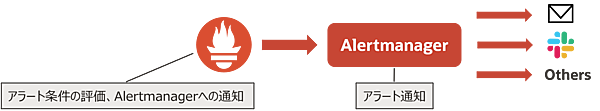 - Alertmanagerは通知に特化したコンポーネント