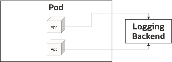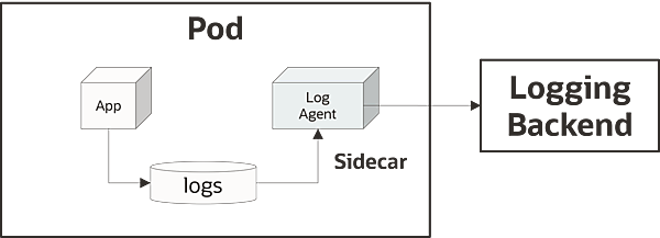 Pod内において、アプリケーションコンテナのサイドカーコンテナとしてログエージェントを配置し、ログを転送する方法です。汎用的なログエージェントコンテナを作成することで、他のシステムでもサイドカーコンテナとして流用できます。