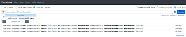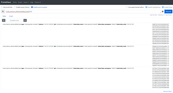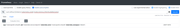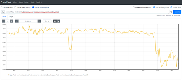 sum without (instance, kubernetes_node) (node_memory_MemAvailable_bytes)グラフとして状況を確認することもできます。