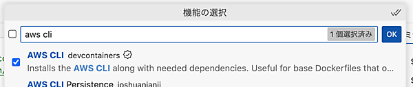 例えば、AWSコマンドを使えるようにしてみましょう。featuresに以下の設定を追加します。