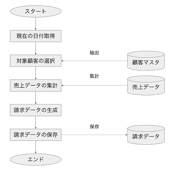 - 前月の締日翌日から本日までの売上データを集計して請求データとする
