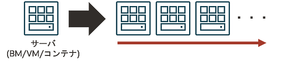 - アプリケーションやソフトウェアが稼働する環境の数を増やすことによって、システムの処理能力を向上させる手法