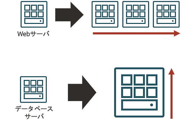 これら2種類のスケール手法は、いずれかを選択するというよりかは、システム全体で適材適所で組み合わせて利用するのが最適です。