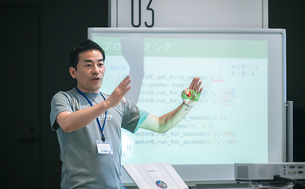 代表の太田さんからの「隣の講演会に負けないように元気よくやりましょう!」という言葉に応えるように、子どもたちがお父さん、お母さんと笑顔で取り組んでいる姿が印象的で、プログラミングができることのイメージを親子が実感できた教室だったように思えました。