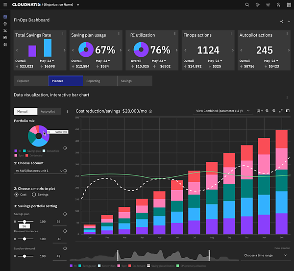 CloudNatixでは、前述の可視化機能による不要なインスタンスの特定、インスタンスのサイズの最適化、不要なインスタンスの停止といった機能と組み合わせることで、仮想マシンの無駄を取り除いた後に効率的に適切な量のSP/RIの購入を検討できるようになる。