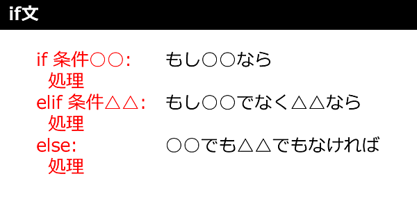 if文は図4のように条件が成り立つかどうかで分岐する制御構文です。他のプログラミング言語では「switch文」という条件分岐もありますが、Pythonではif文だけで条件分岐を扱います。