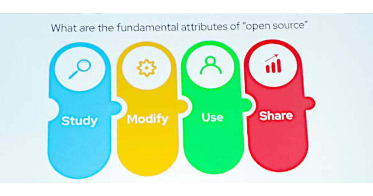 Eder氏は、オープンソースの原則をStudy/Modify/Use/Shareすることにあると説明。