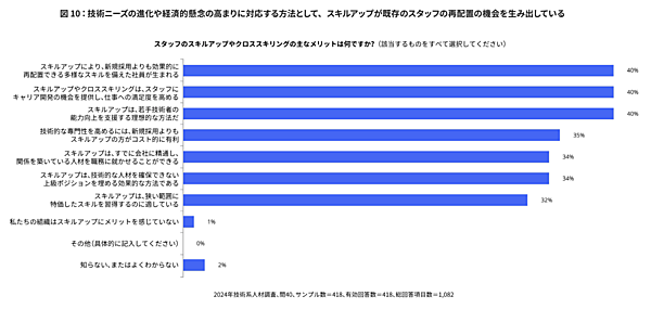 前述したように、生成AIのような新しい技術が登場してきたときは技術者をスキルアップすることで対応できるわけですが、スキルアップやクロススキリングには、そのようなメリットがあるのでしょうか。