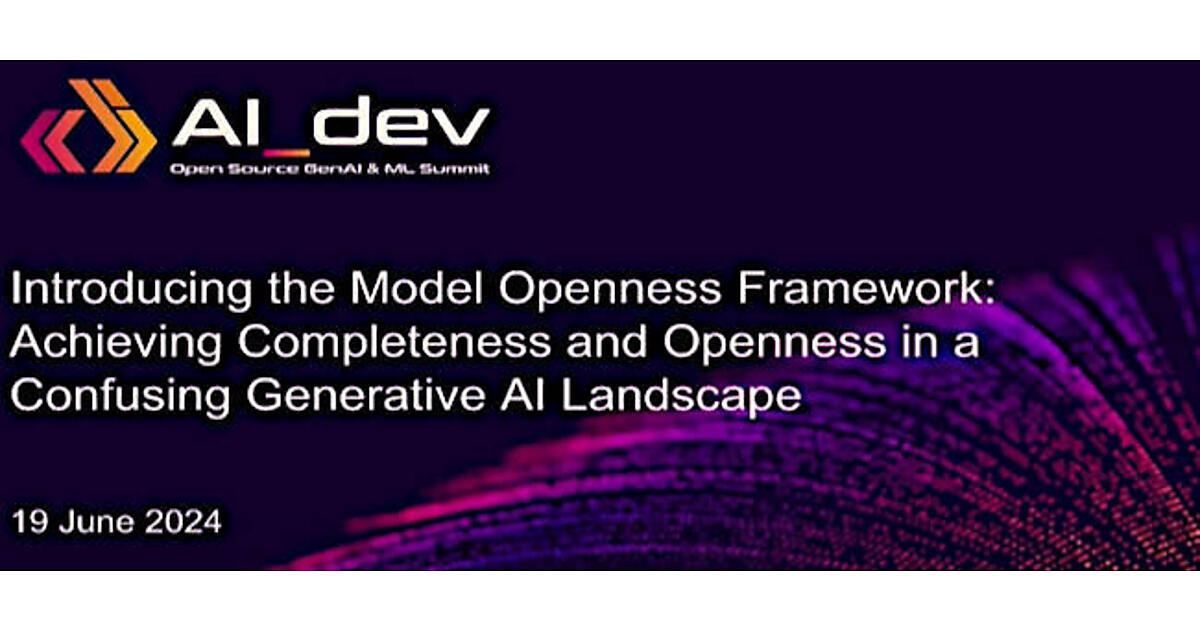 その現状を改善するためにModel Openness Framework(MOF)を発表し、第3者が生成型AIのモデルとそれに関連するコンポーネントなどの「オープン」の度合いを比較検証できる仕組みを作ったと説明した。