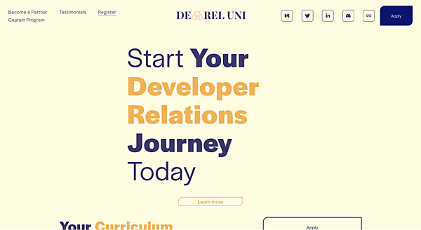 海外の事例ですが「DevRel University」というサイトがあります。ここでは6週間かけてDevRelについて体系的に学べます。