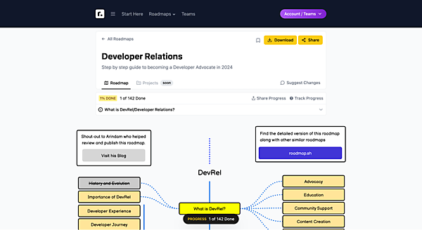 そして、このRoadmap.shの中にDevRelに関するロードマップが追加されました。主なカテゴリーとして、以下が挙げられています。