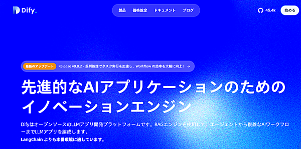 Difyは大規模言語モデル(LLM)を活用したアプリケーションの開発と運用を簡素化するためのプラットフォームです。その名前は「Define(定義)+Modify(修正)」に由来し、AIアプリケーションを定義して継続的に改善することを意味しています。
