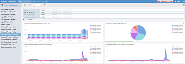 そしてVMware NSXとLog Insightを組み合わせると、例えば分散ファイアウォールのログからホスト単位の通信量を可視化することが可能になります。