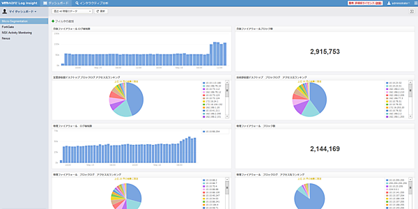 他にも分散ファイアウォールのブロックログの統計情報の表示や、物理機器のSyslog送信先として設定することでファイアウォール機器の統計情報を表示するといったことが可能です。
