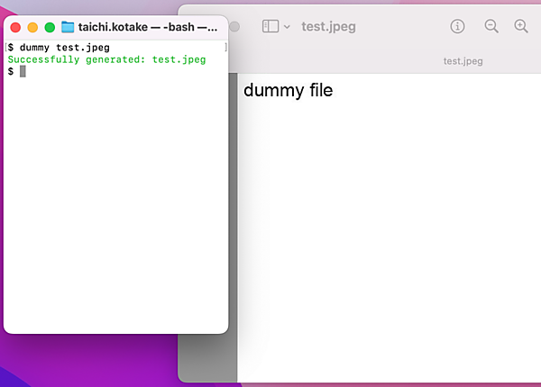 $ dummy -t abc -b 1MB test.png-tオプション、-bオプションは指定しなくとも使用できます。-tオプションでテキストを指定しない場合は、デフォルトの「dummy file」というテキストが書き込まれます。$ dummy test.jpegどのようにして任意のサイズのPNGファイルを生成しているのか