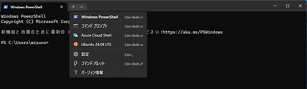 また、PowerShellを動かしている、Windowsターミナル内からUbuntuのプロファイルを指定することでも起動できます。Windowsターミナルとプロファイルについては、次回で詳しく解説します。
