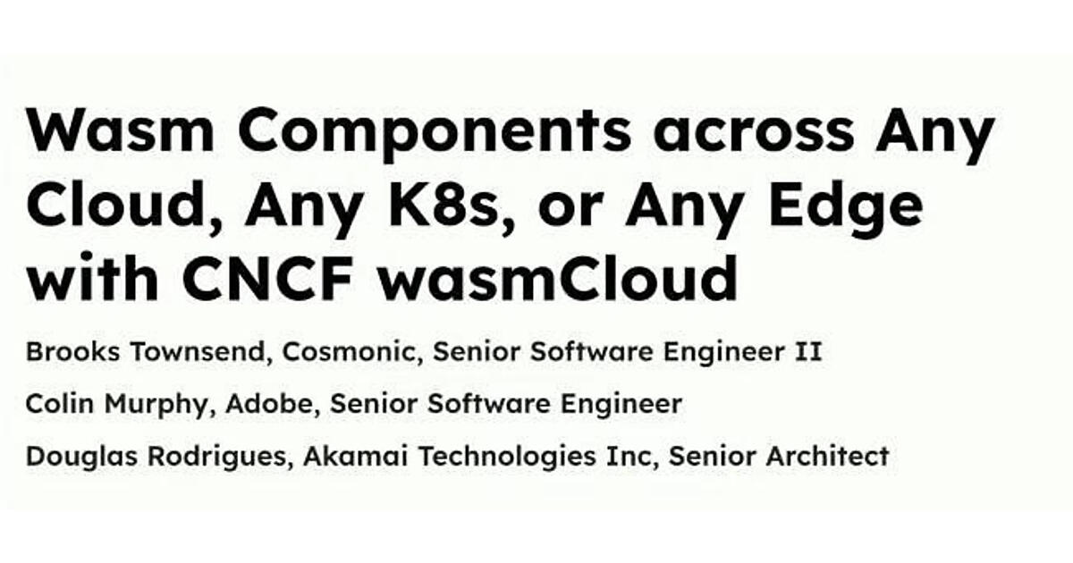 MC役はVMwareのWhitney Lee氏だ。Brooks Townsend氏はwasmCloudの開発をリードするCosmonicのシニアエンジニア、Colin Murphy氏はAdobeのエンジニア、そしてDouglas Rodrigues氏はAkamaiのシニアアーキテクトという肩書きを持つ。これまでもCosmonicは自社のユーザーとしてAdobeをKubeConに併設されたCloudNative WASM Dayなどで紹介しているが、今回はAkamaiを交えて解説するという内容だ。