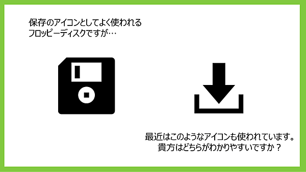このように、アイコンとはその画像が示す意味を皆さんの共通認識に強く依存しているのです。