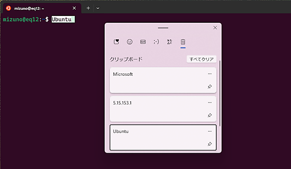これで、以後はコピーした内容の履歴が保存されるようになります。ペーストしたい場合は[Win]+[V]キーを押してペーストしたい項目を選択してください。