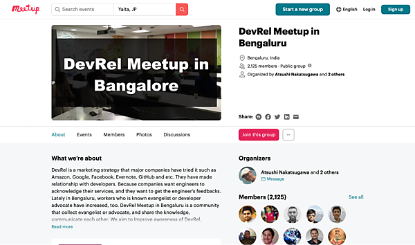 自分が注目するテクノロジーに関するコミュニティを運営することで、回り回って自分のブランディング向上につながります。筆者の場合で言えば「DevRel/Tokyo」というコミュニティであり、現在インドで行っている「DevRel Meetup in Bengaluru」も該当します。コミュニティ運営メンバーに加わって貢献するのは、個人のブランディング向上につながります。