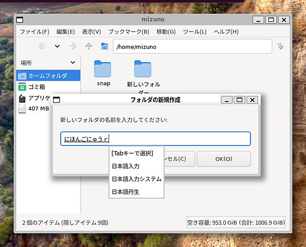 以後、WSLgのGUIアプリ上で[Ctrl]+[Space]キーか、[半角/全角]キーを押すと日本語入力がONになります。