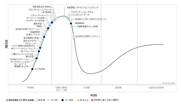 【出典】Gartner、「生成AIのハイプ・サイクル:2024年」を発表 - 2027年までに生成AIソリューションの40%がマルチモーダルになると予測(Gartner 2024年9月10日)