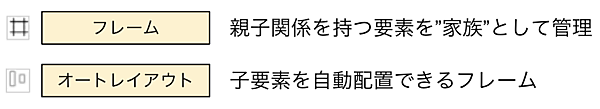 - オートレイアウトは要素を自動配置する機能を持ったフレームである
